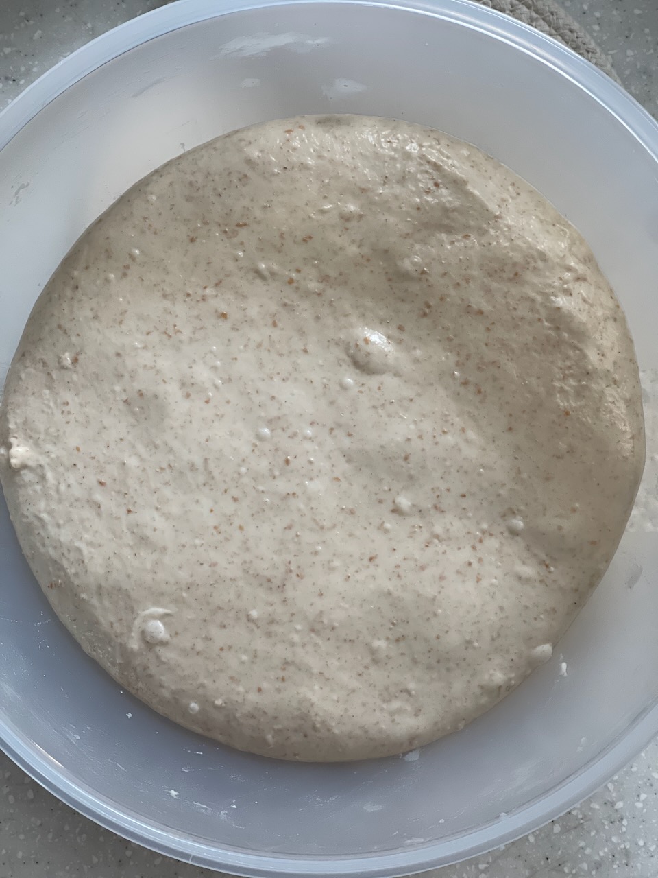 이번엔 스펠트 밀이 15% 들어가는 플랫 르방 브레드 버전을 따라 구워봤다.