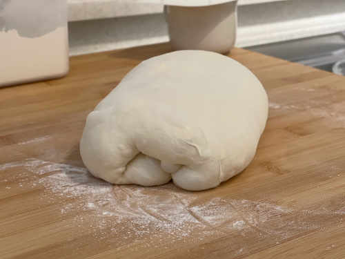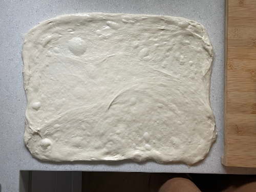 1차 발효 후에 라미네이트 작업으로 넓게 펼친 후 버터를 갈아 넣어준다. 레시피 영상 팁대로 저울의 0점을 맞춘 후, 갈면서 30g에 맞춰보려 했는데 무지성으로 갈다보니 30g이 훌쩍 넘었다. 37g이 들어갔지만 전후로 조금 추가되어도 맛에 큰 차이는 없을 것 같다.