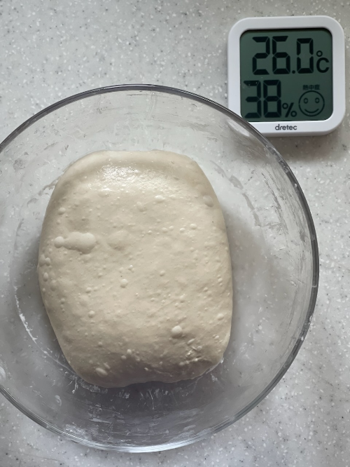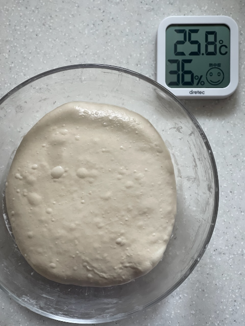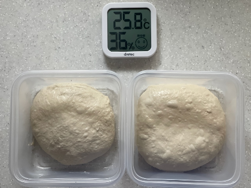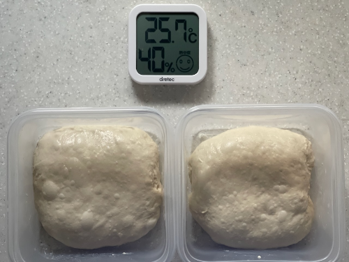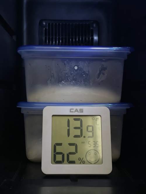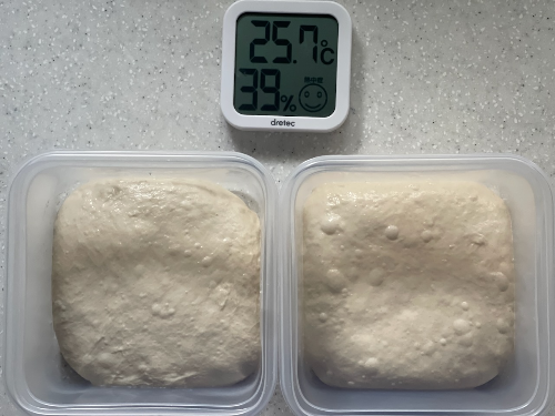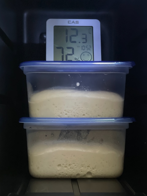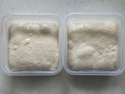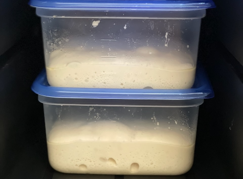 지난 강력분 르방 버전보다 총 반죽량이 30g 정도 많긴 하지만, 눈에 띄게 발효 부피 차이가 나는 것을 알 수 있다.