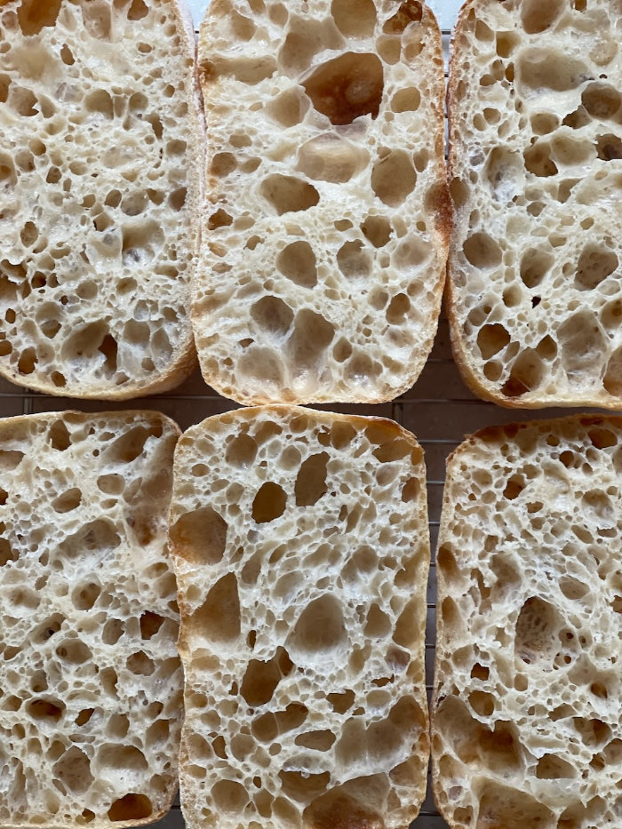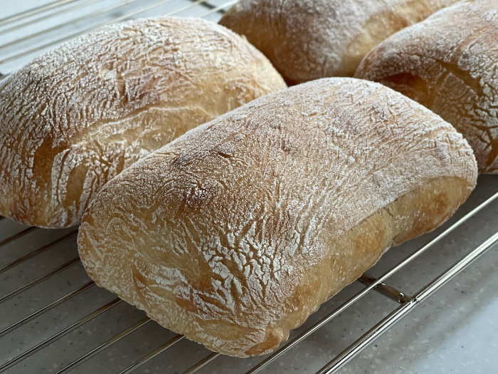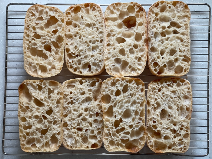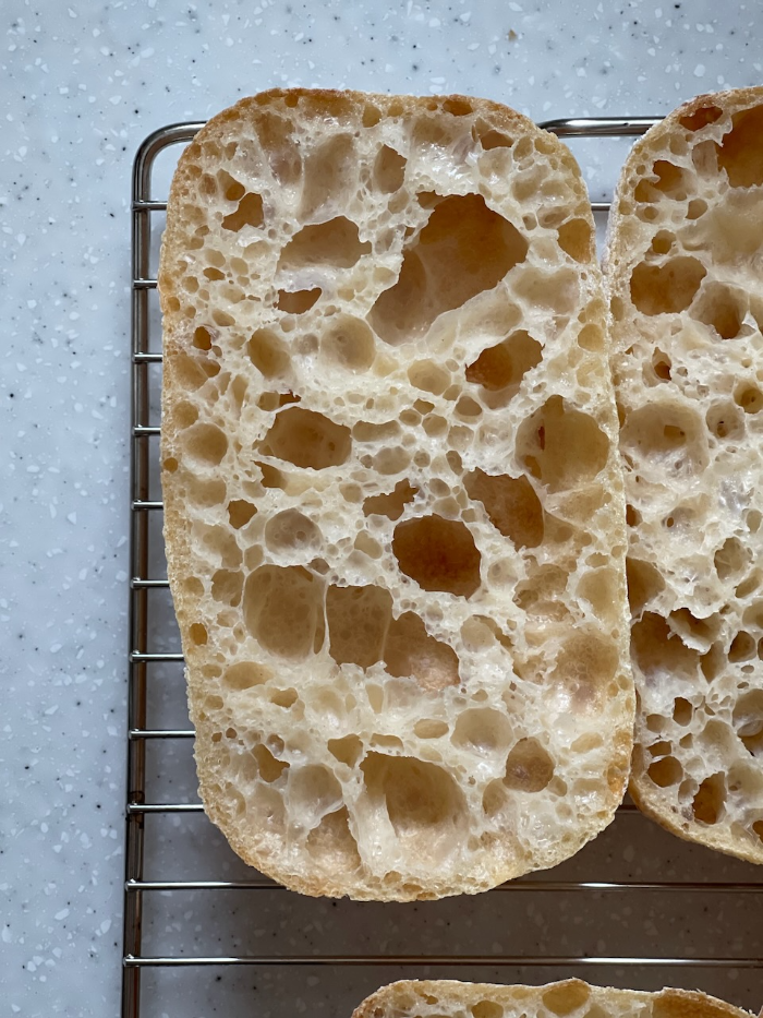 스트레이트법으로 굽는 치아바타보다 저온 장시간 발효 덕분에 풍미와 산미가 더욱 깊고 노화는 더디다고 느껴졌다.