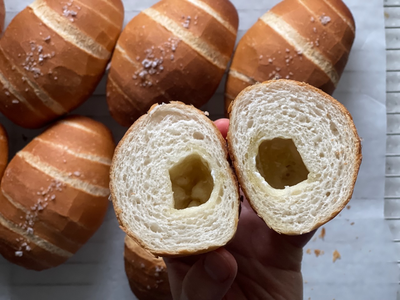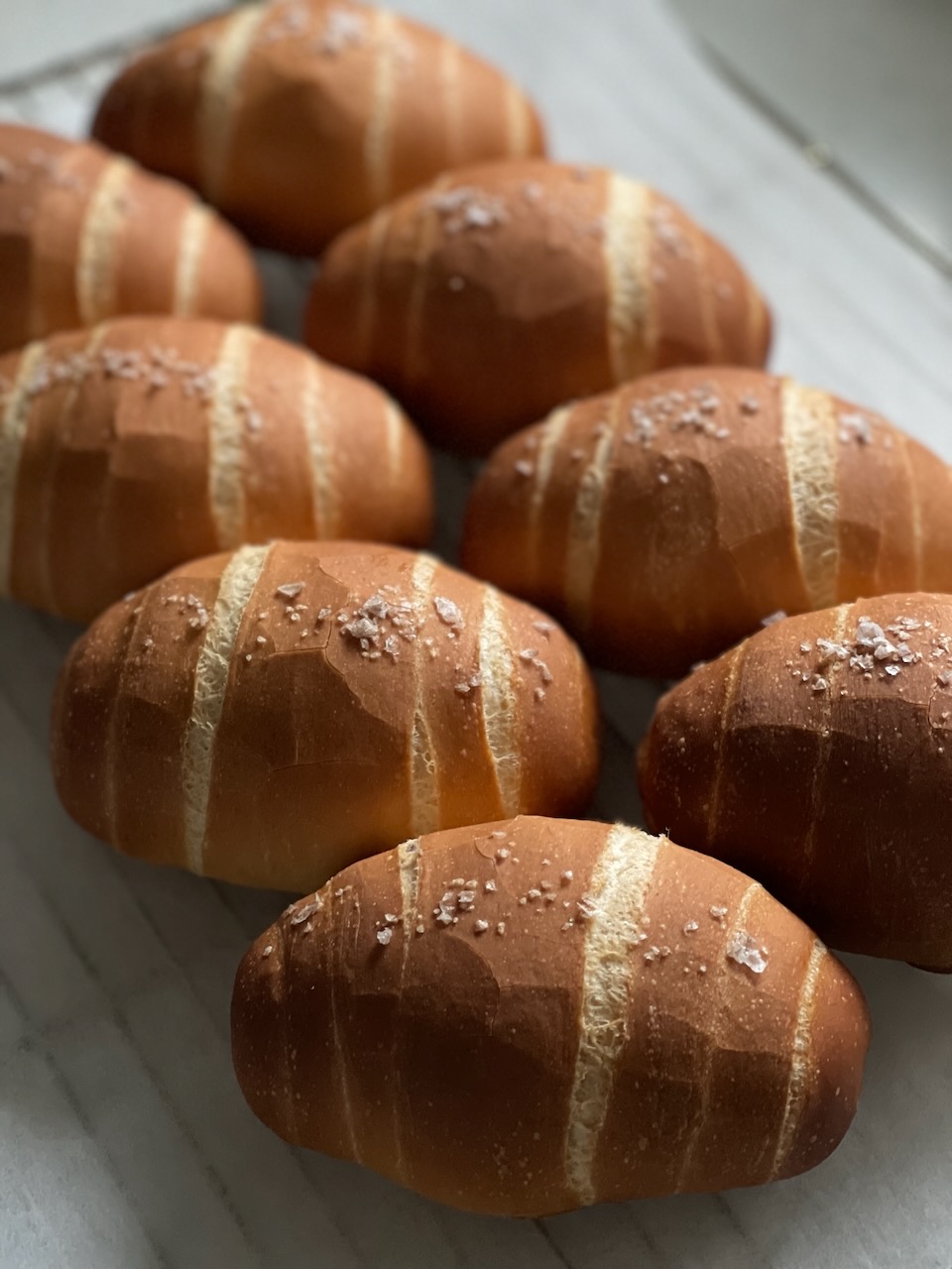 T65를 사용해 크러스트가 아주 구수하고, 씹는 맛이 좋은 소금빵이었다. 말아 넣는 버터는 무염을 사용해 배합 본연의 맛을 더 느낄 수 있었던 점도 마음에 들었다. 오랜만에 책을 꺼낸 김에 다른 레시피들도 도장깨기 해보고 싶어서, 책 속에서 사용하는 밀가루도 새로 구매했다. 다음엔 르방으로 만드는 베이글이다!