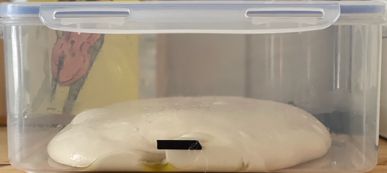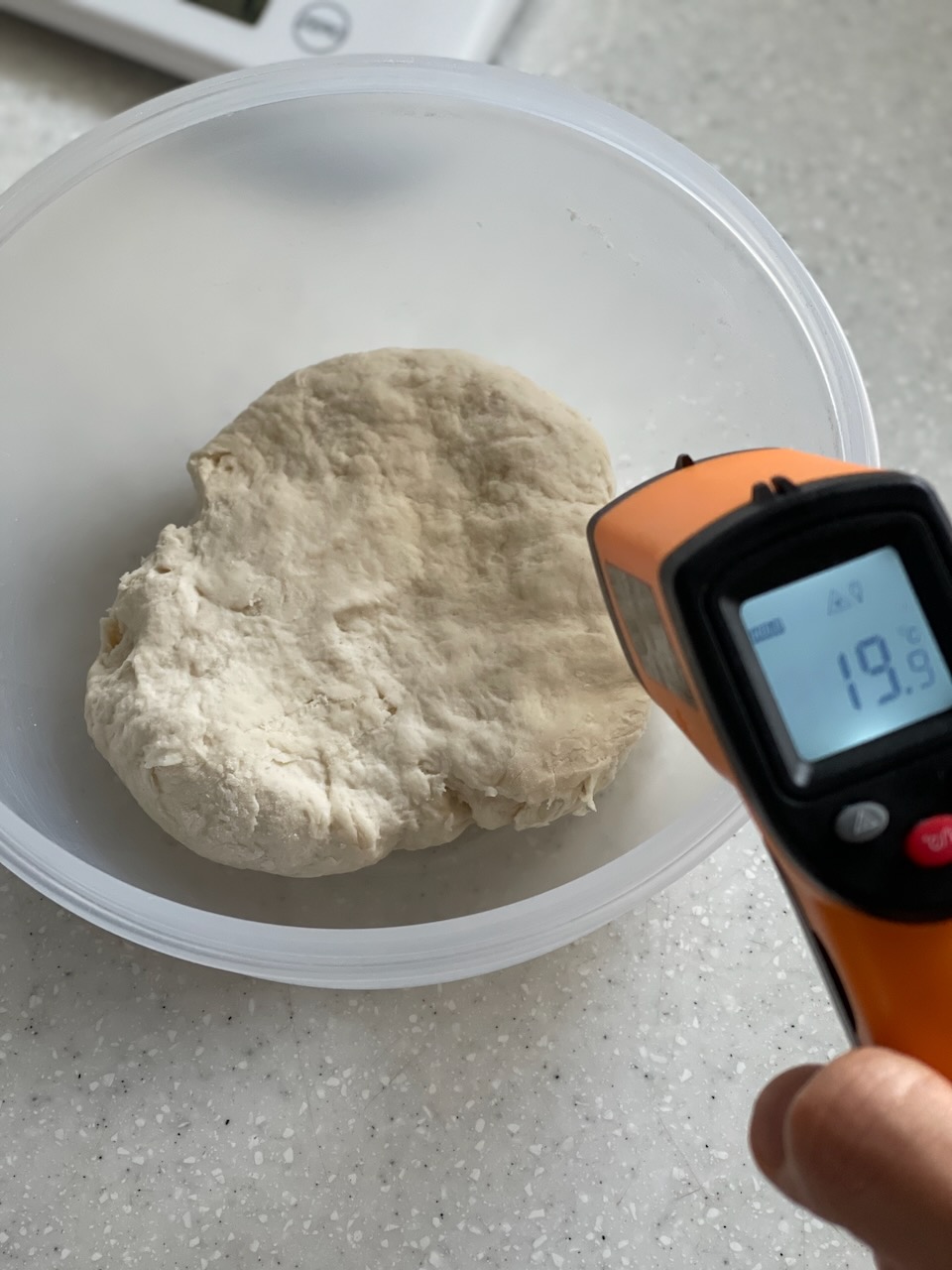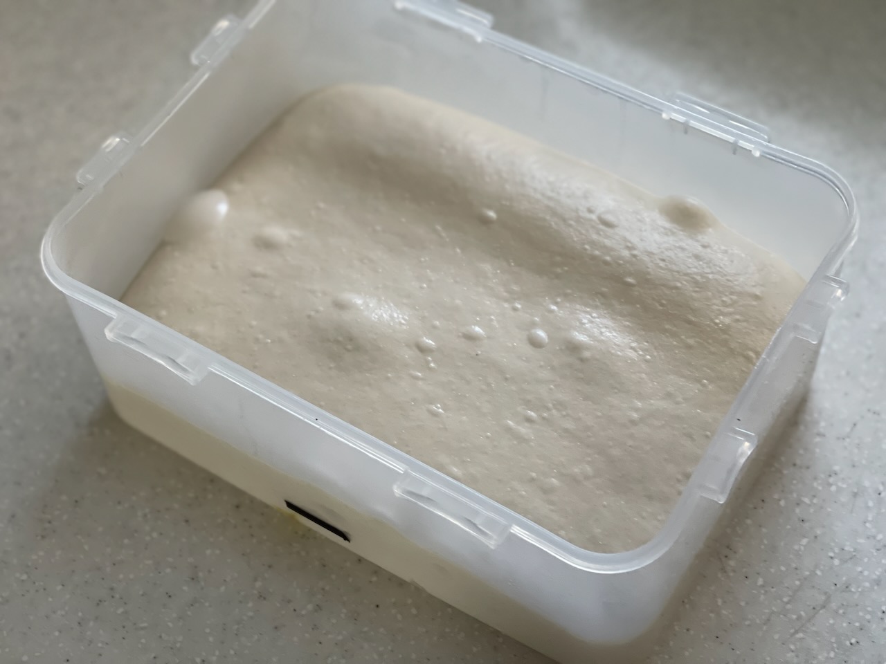 폴딩과 오토리즈를 반복하며 글루텐이 발전하고 반죽의 점탄성이 좋아진 것을 확인한 후 1차 발효에 들어갔다.