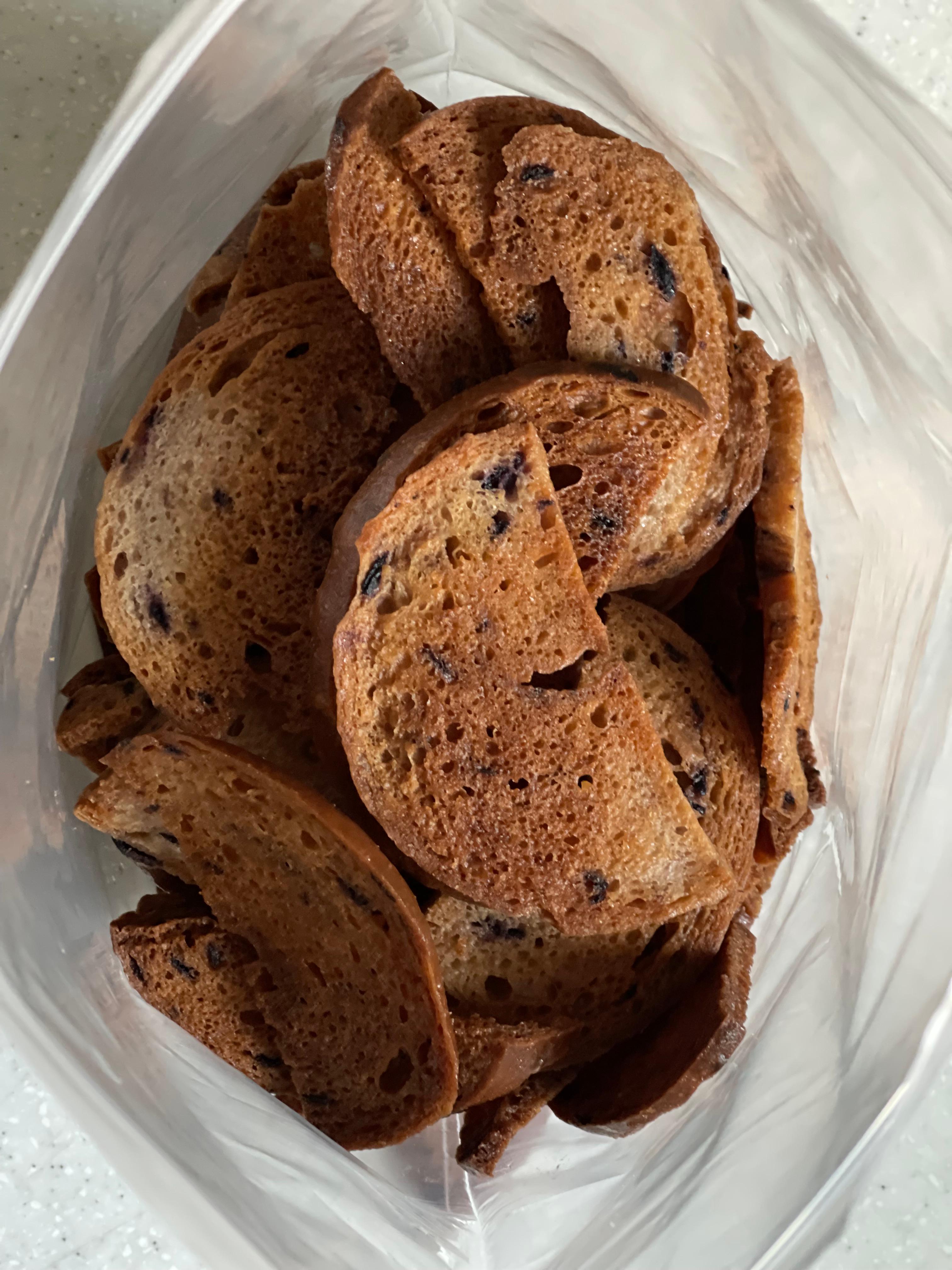 줄지 않는 초강력분 소진을 위해 베이글 12개를 구웠다.이번에는 시나몬과 코코아파우더를 넣어 두 가지 맛으로 반죽을 나눠봤다. 시나몬 베이글에는 과일 절임을, 초코 베이글에는 초코칩을 넣는 게 기본이지만 이번엔 베이글칩을 만들 생각이라 충전물을 생략했다. 베이글칩을 만들기 위해 일부러 가운데 구멍을 작게, 전체적으로 통통하게 성형했다.조각이 너무 많아지면 우유·버터물을 적실 때나 굽는 중간에 뒤집을 때 손이 많이 가기 때문이다. 우유·버터·설탕을 1:1:0.8 비율로 녹여 얇게 슬라이스한 베이글을 적셨다.베이글 9개 기준으로 버터 226g, 우유 226g, 설탕 180g을 사용했는데 1개 분량 정도가 남았다. 160도에서 20분 굽고, 뒤집어서 20분 더 구웠다. 바삭바삭 중독성 강한 베이글칩 완성..